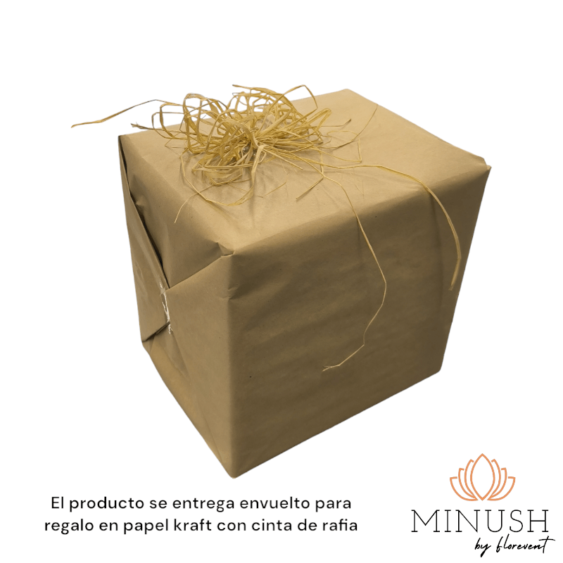 El producto viene en caja, se entrega envuelta en papel Kraft con un pequeño moño de rafia, ideal para regalar!